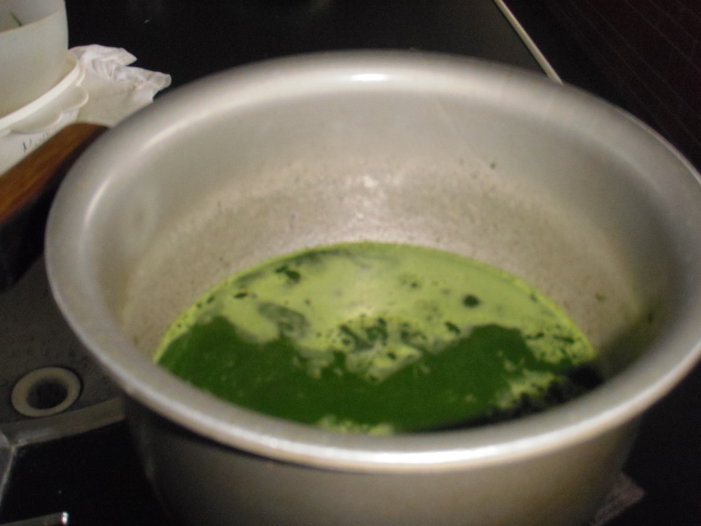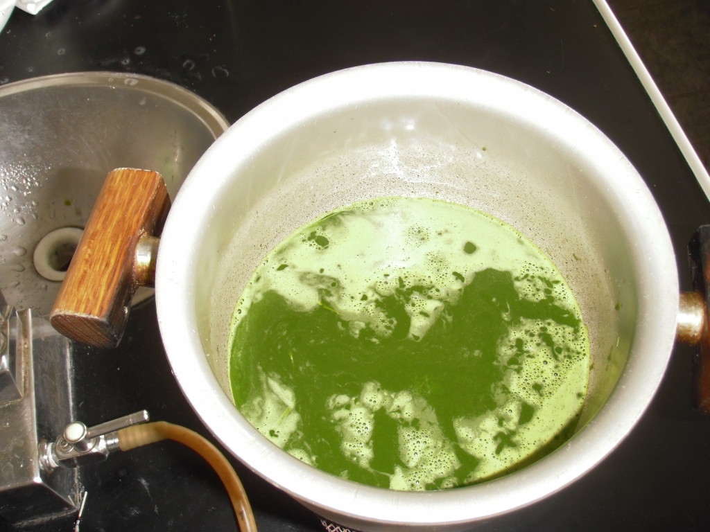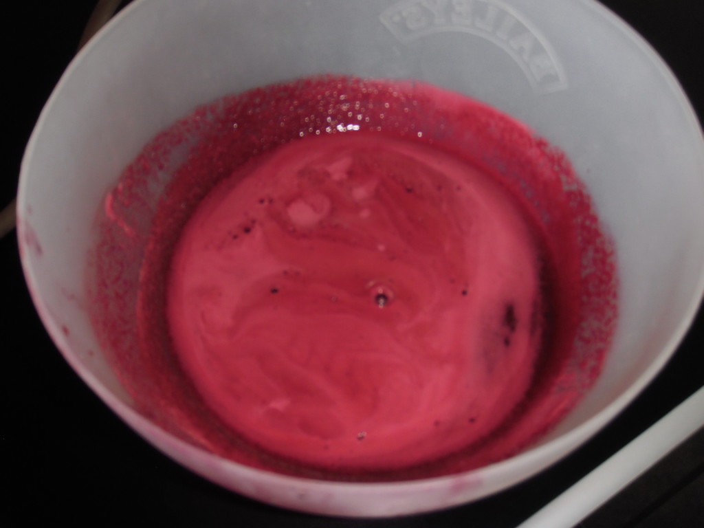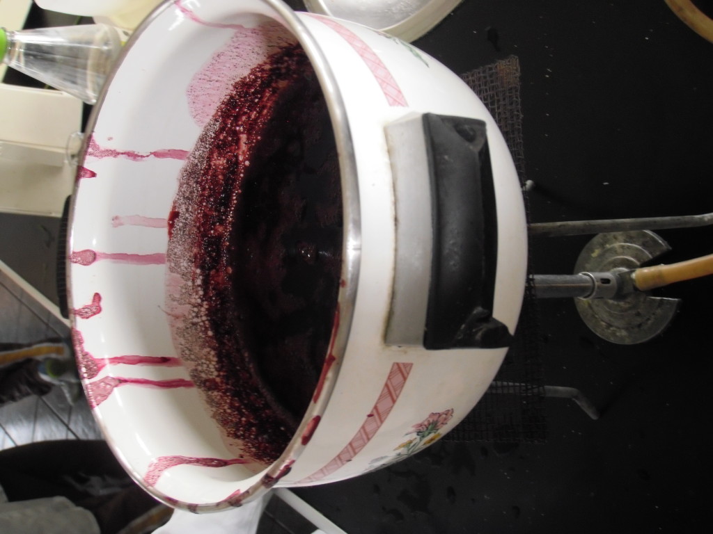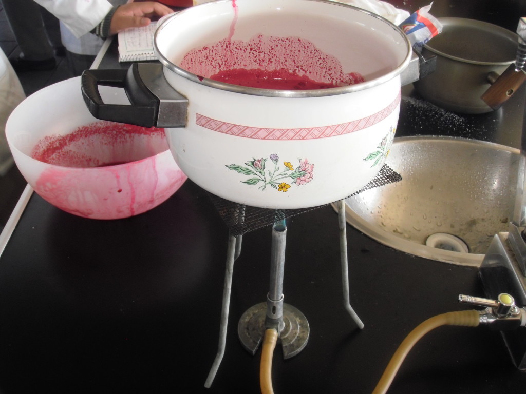We got two natural dyes, one color wine made from beets and we obtain half liter at the same time. There other was made with grass and its color was green, and we got half liter.