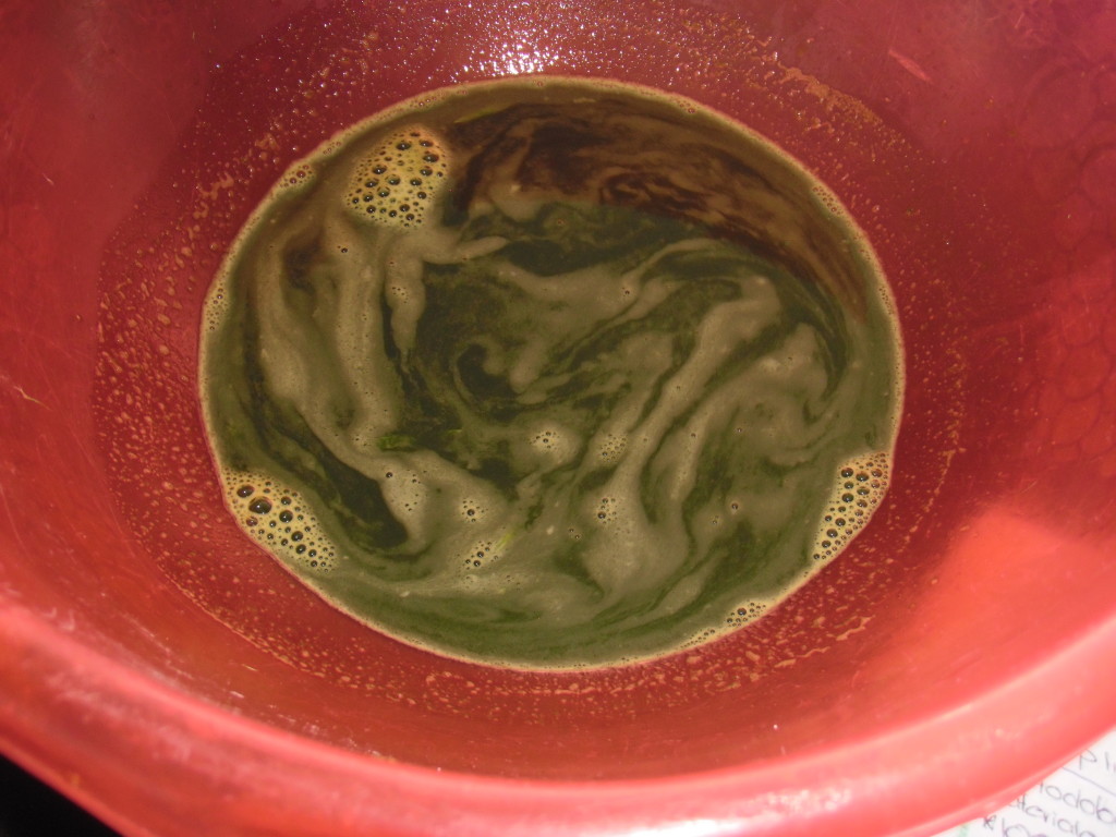 Obtuvimos dos tintes naturales, uno de color vino hecho con betabel y del mismo tuvimos medio litro de tinte. Del otro, fue de color verde elaborado con pasto y se obtuvo medio litro.