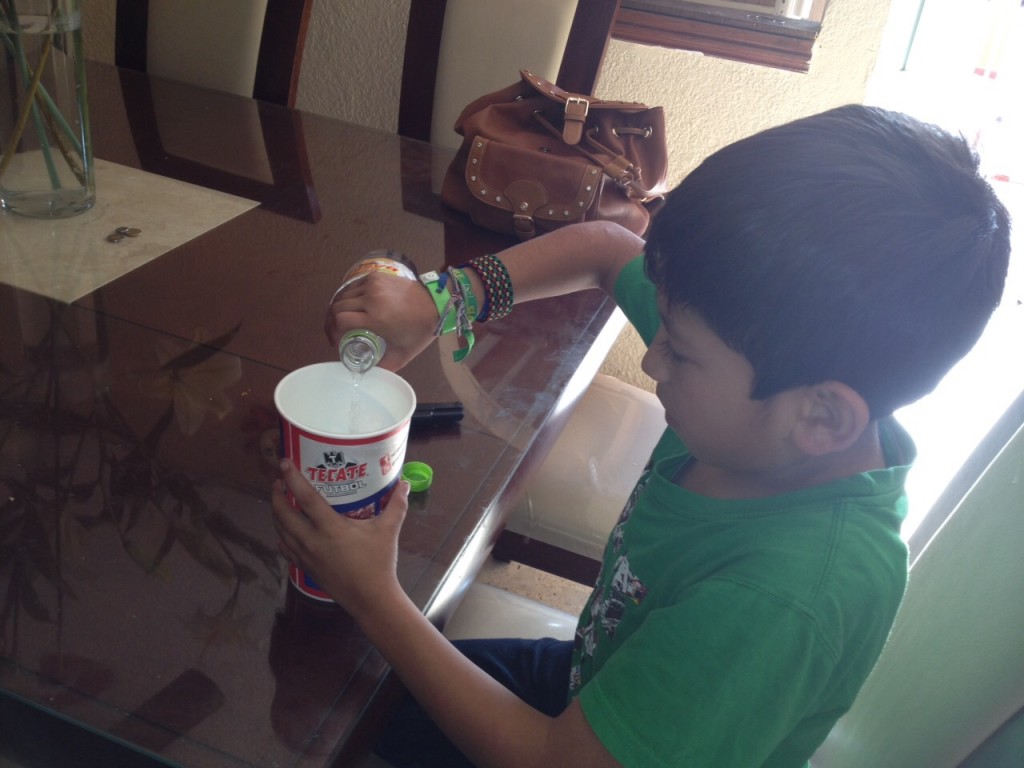 •  Llenar el recipiente de plástico con vinagre suficiente como para cubrir totalmente el huevo.