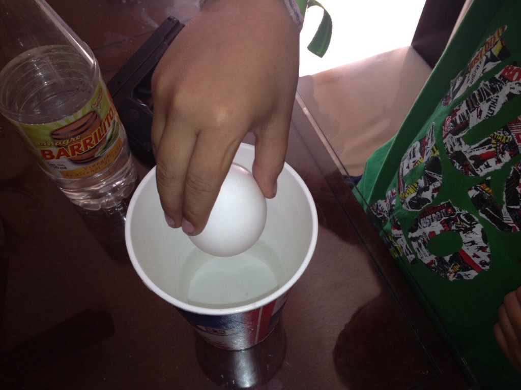 El vinagre y el agua que hay en el vaso han entrado en el huevo para igualar concentraciones dentro y fuera. Los procesos de difusión y ósmosis son importantísimos en biología porque las células los utilizan para obtener nutrientes y liberarse de desechos.
