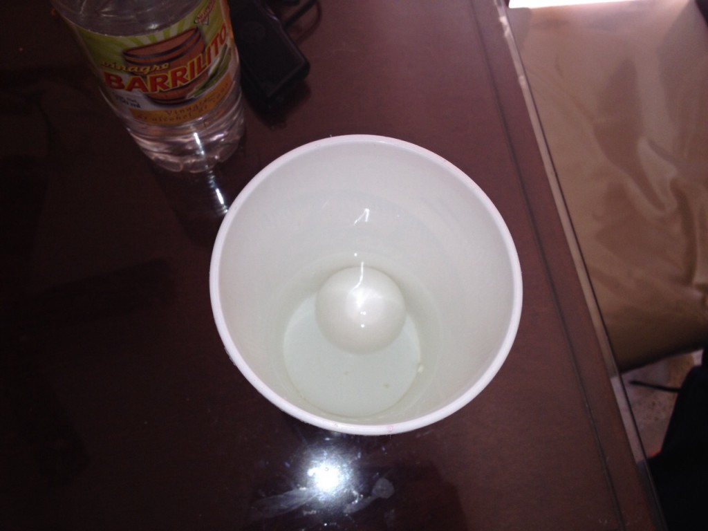 Al dejar el huevo por 48 horas en vinagre obtuvimos como resultado que el vinagre desprende la cascara de huevo y aumenta el tamaño del huevo teniendo como resultado el huevo se convierte en elástico y puede rebotar como si fuera una pelota.