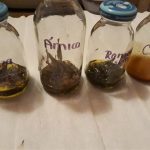 5. Colocar el romero, cúrcuma, sauce y árnica en cada frasco (1 frasco por ingrediente), enseguida verter 50 ml de aceite de oliva extra virgen y tapar perfectamente. Una vez que estén todos listos, se volverá a colocar los frascos con la boca hacia arriba en una olla profunda y cubrir por completo con agua fría (mínimo 2.5 cm. por encima de ellos). Deben hervir a borbotones durante 10 minutos como mínimo para cerrar al vacío. (Figura 10)