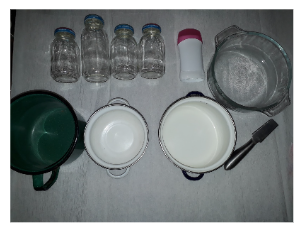 6. 4 frascos de gerber vacíos, limpios y hervidos.