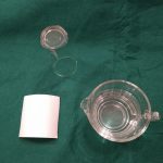 Llena el vaso con agua y ponlo sobre una superficie que se pueda mojar.