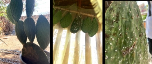 Paso 1: Se deja crecer el nopal con la plaga y luego de tener la madurez necesaria, se cortan y se llevan a invernaderos y se dejan allí hasta que las cochinillas se reproduzcan.