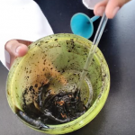 6. Moler las semillas de fresas junto con el bicarbonato de sodio hasta obtener una pasta.