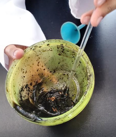 2. Colocar en un recipiente las cenizas que obtuvimos.
