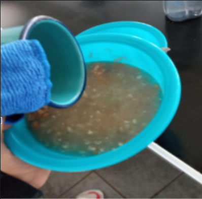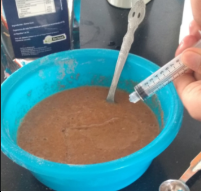 Obtuvimos una mezcla con un peso de aproximadamente 500 gramos, con una consistencia espesa y coloración marrón; de esta misma logramos hacer 2 espirales medianos, con un diámetro de 9.2 centímetros cada uno.