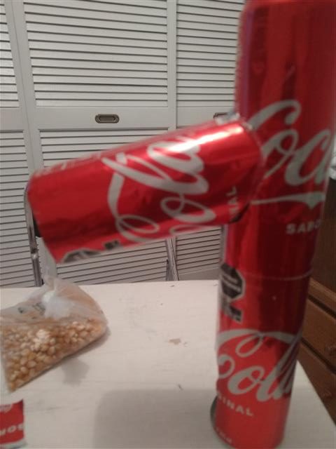 Paso 9: Luego verterlas las semillas de palomitas de maíz en la lata de arriba.