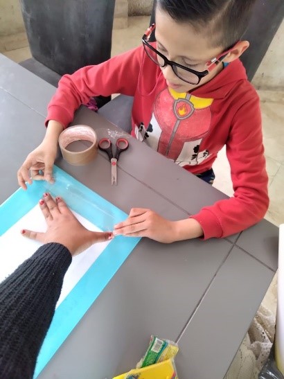 *papel azul cielo para la base de los pulpos