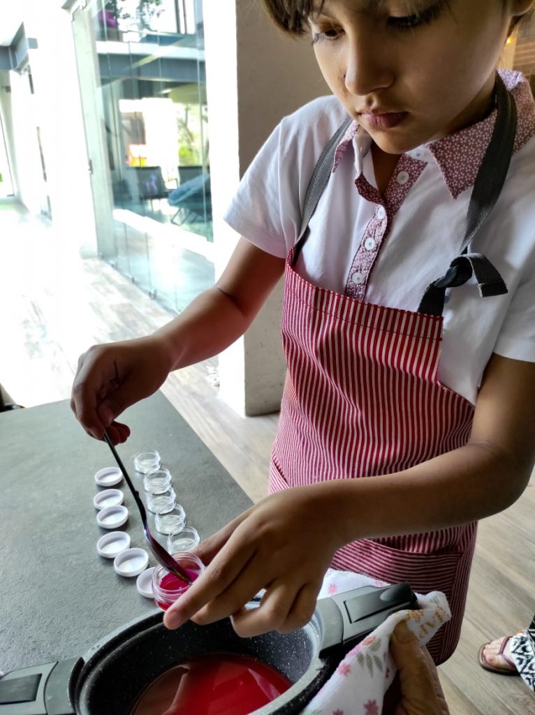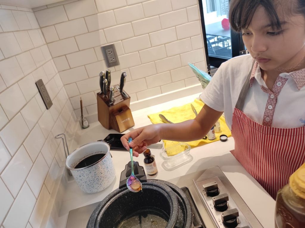 El siguiente paso fue vaciar la mezcla caliente a los contenedores y esperar a que se endureciera.