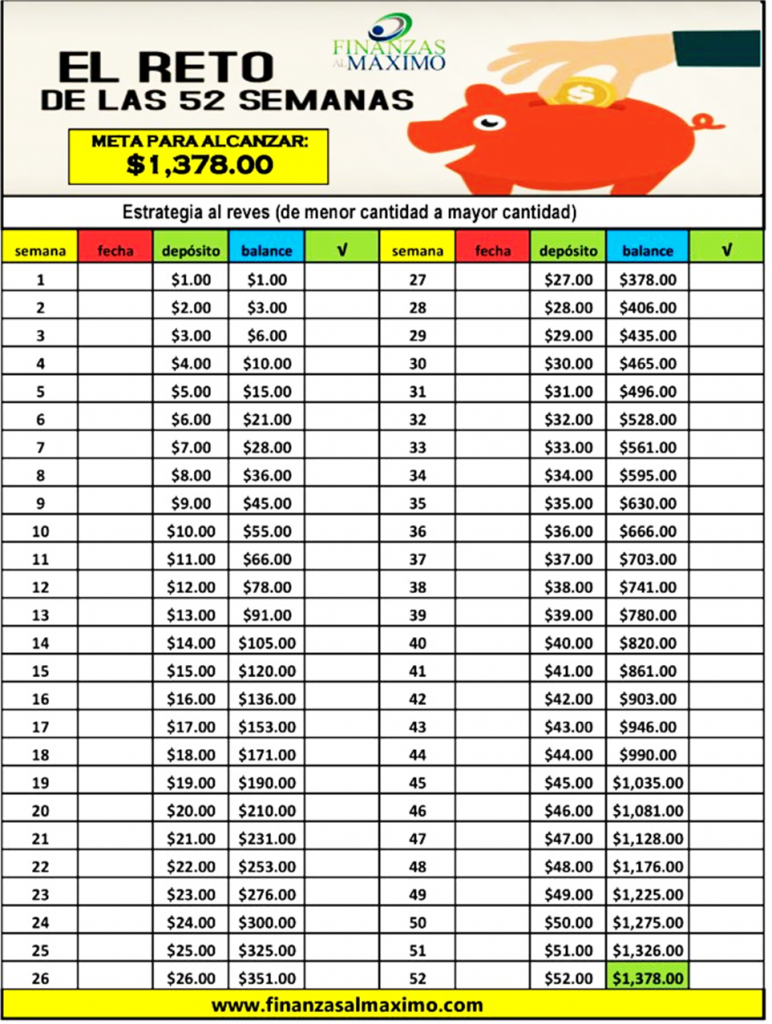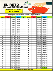 y así sucesivamente hasta depositar en la semana y última del año $52.00