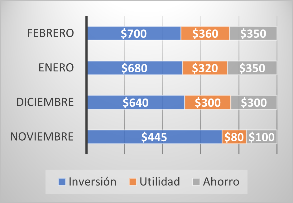 Ocupe los $200 que tenía, en tres meses empacando dulces a granel y vendiéndolos, aumente mi inversión y por lo tanto mi ganancia, así que luego de este tiempo, he logrado ahorrar $1600, y tengo una inversión estable de $680. No siempre funciona bien, hay semanas que mis dulces tardan más en ser vendidos, pero, aun así, sigue siendo conveniente este ejercicio.