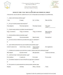 Se utilizó la herramienta de encuesta para determinar la viabilidad de practicar yoga como un ejercicio para equilibrar la condición del ser humano (mente y cuerpo), dicho muestreo se aplicó a 30 personas que practican yoga en diversos lugares del Estado de México.
