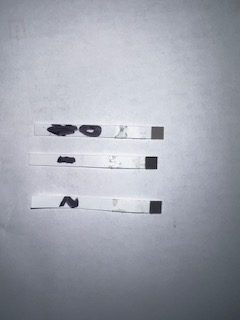 Al hacer la prueba de acetol, ambas tiras sufrieron un cambio de color notable, demostrando el contenido de acetol en ambos cartuchos.