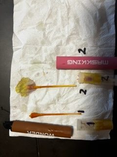 Al realizar la prueba del hisopo para comprobar plomo en los cartuchos, en el cartucho 1 se observó un cambio ligero de color, mientras que en el cartucho 2, la coloración fue muy notable, que incluso la esponja del cartucho cambió tambien de color, por lo que se deduce la presencia de cantidades variables de plomo entre los dos vapeadores.