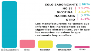 Como se observó, los vapeadores tienen sustancias que son nocivas para el cuerpo, aun cuando las empresas fabricantes no lo reporten, haciendo que la desinformación sobre el riesgo del vapeo lleve al alto consumo de estos productos.