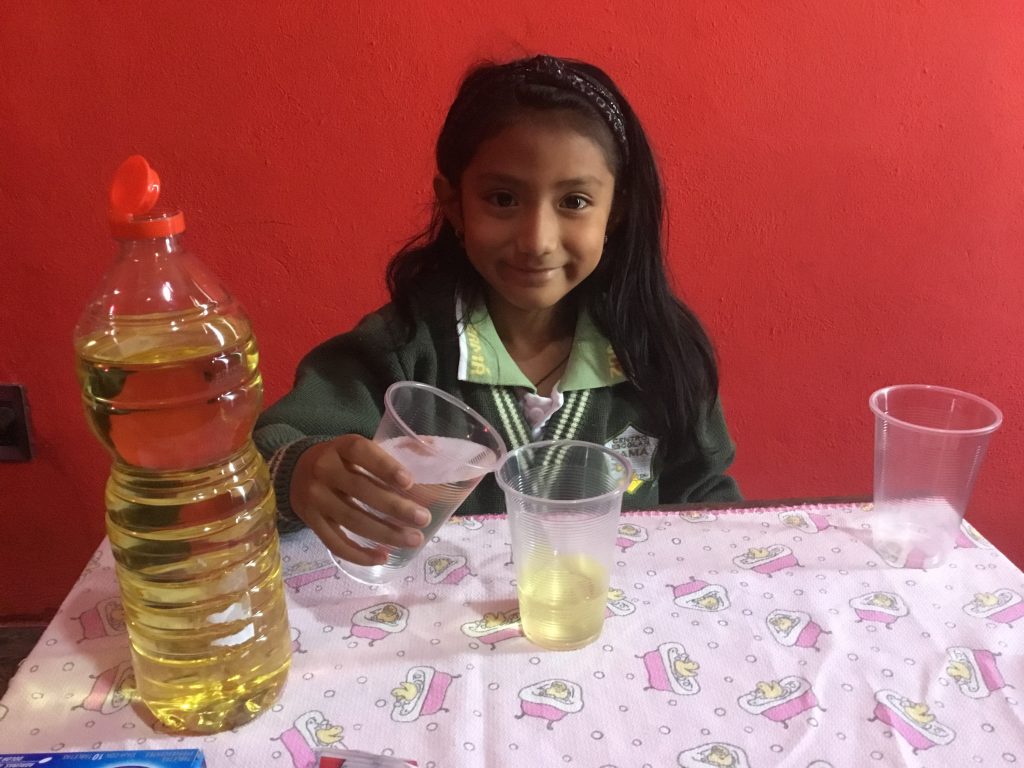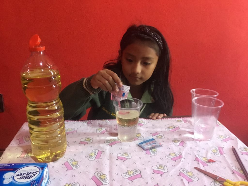 La inquietud es por qué no se mezcla el aceite con el agua cuales son sus reacciones al agregar el colorante vegetal y la pastilla efervescente.