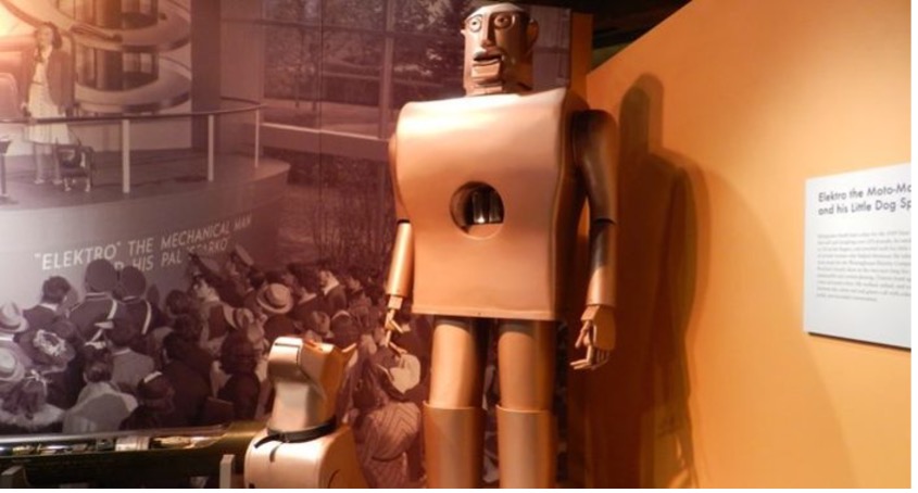 En 1939 se presentó al primer robot humanoide, Elektro, un “hombre-motor”. Tenía piel de aluminio, una altura de dos metros y ciento veinte kilos y gracias a células fotoeléctricas podía ver y distinguir colores como el verde y el rojo. También se movía dando pasos y levantando los brazos, y contaba con habilidades tan curiosas como contar con los dedos, cantar, pronunciar hasta setecientas palabras, fumar e inflar globos. Todo esto lo consiguió su padre, el ingeniero Joseph Barnett, al año siguiente, Elektro repetiría junto a su mascota, un perro robótico llamado Sparko.
