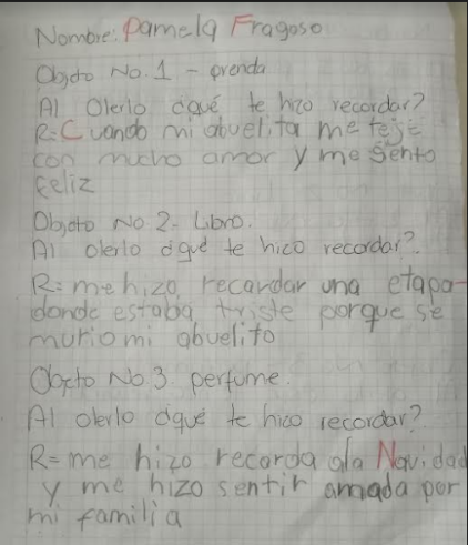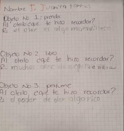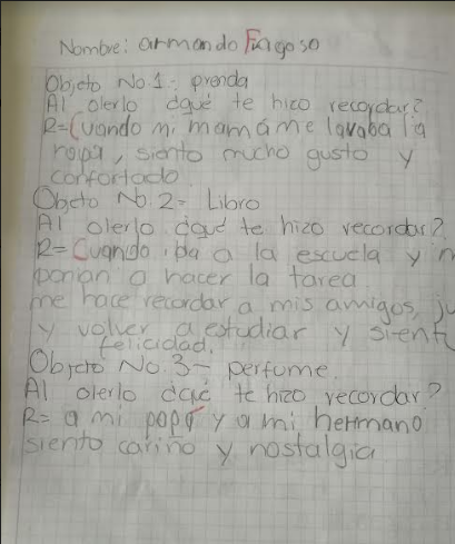 Se le otorgarán diferentes artículos a 10 personas, con la finalidad de que por medio del olfato describan mediante entrevista la memoria que les hace recordar y el sentimiento que desencadena dicha memoria.
