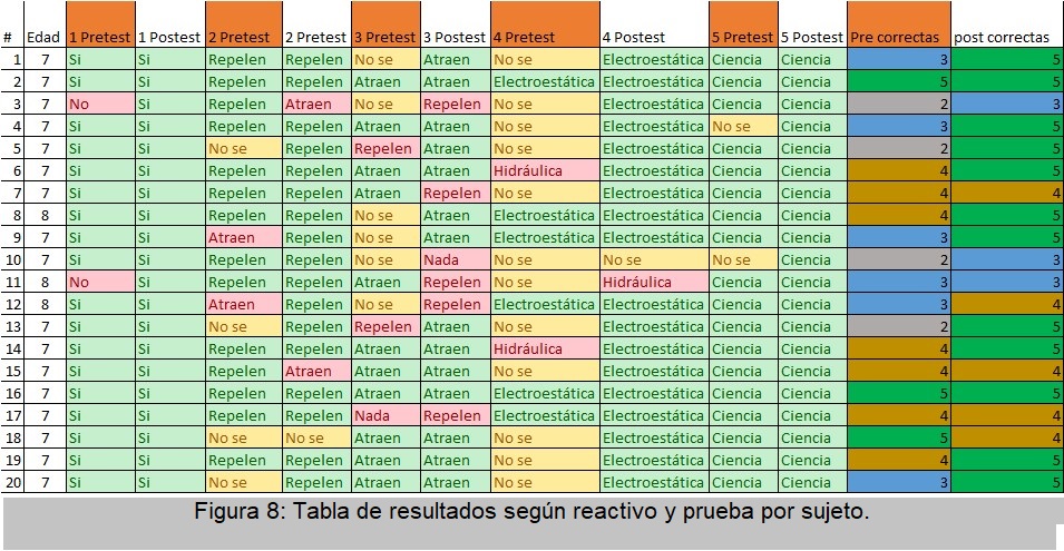 En la figura 8 podemos observar que el participante #5 y el participante #13, fueron los que modificaron su pensamiento con mayor número de respuestas positivas a comparación de la prueba pretest, confirmando que después de presenciar el show de magia mejoró su comprensión sobre los conceptos teóricos de electroestática, el comportamiento de las cargas eléctricas y sus efectos electroestáticos de atracción o repulsión que se generan entre los cuerpos.