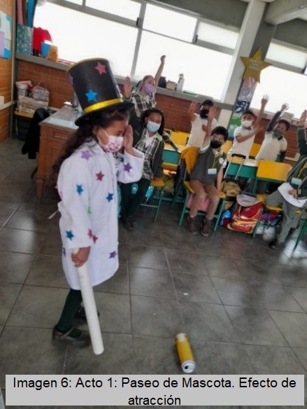 ACTO 1: PASEO DE MASCOTA. Consiste en producir movimiento en una lata de aluminio con un tubo de PVC, después de haber sido frotado con una tela.