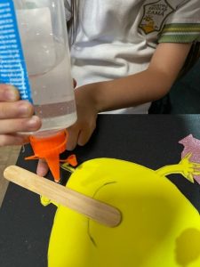 2.- Recórtalo, decóralo y pégale el palito de madera para que se detenga