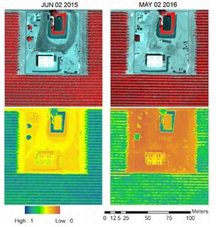 En cuanto a los productos de estos vuelos programados, los mapas que se obtienen utilizando drones comerciales son el Índice Normalizado de Vegetación Diferencial (NDVI) o similares. El NDVI es un índice que muestra en forma general el estado de salud de una planta. Si los valores de NDVI están cerca de 1.0, se espera que la vegetación sea saludable, pero para valores cercanos a 0.0, el mapa muestra suelo desnudo o vegetación estresada. Diferentes cámaras proporcionan distintos valores de NDVI para el mismo campo y tiempo de vuelo, lo que podría inducir a error al usuario. Las cámaras agrícolas, sin embargo, pueden proporcionar un NDVI estándar que es comparable con otras cámaras agrícolas como las de los satélites.