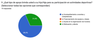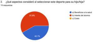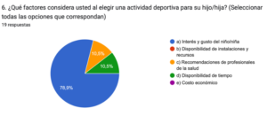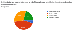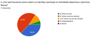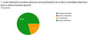 Asimismo, con los resultados de las encuestas realizadas a los padres nos percatamos que la mayoría de ellos opinan que es indispensable que los niños practiquen actividades físicas y deporte para una mejor calidad de vida para sus hijos, pues señalan que es fundamental para una vida sana, por ello, se involucran de manera positiva, apoyando sus intereses y modelando un estilo de vida activo.