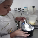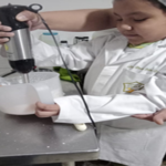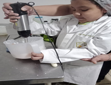 4. Una vez transcurrido el tiempo de la mezcla de fases, adicionar la fase C manteniendo la agitación con la ayuda de la batidora de inmersión.
