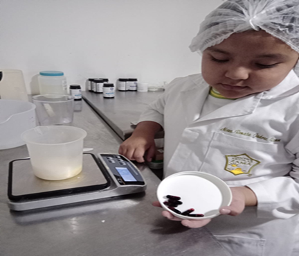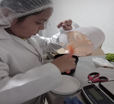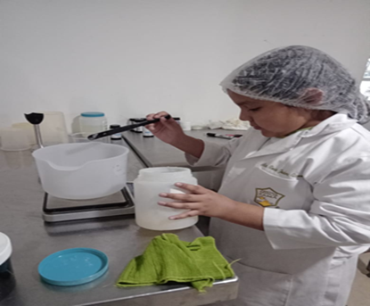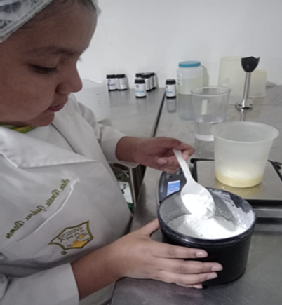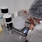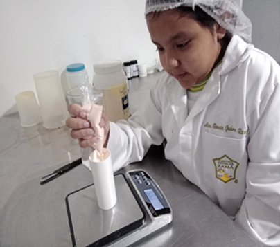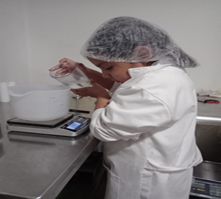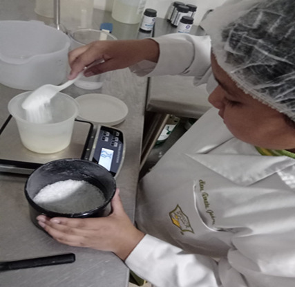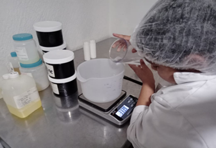 Pesar en un recipiente las materias primas en un recipiente.